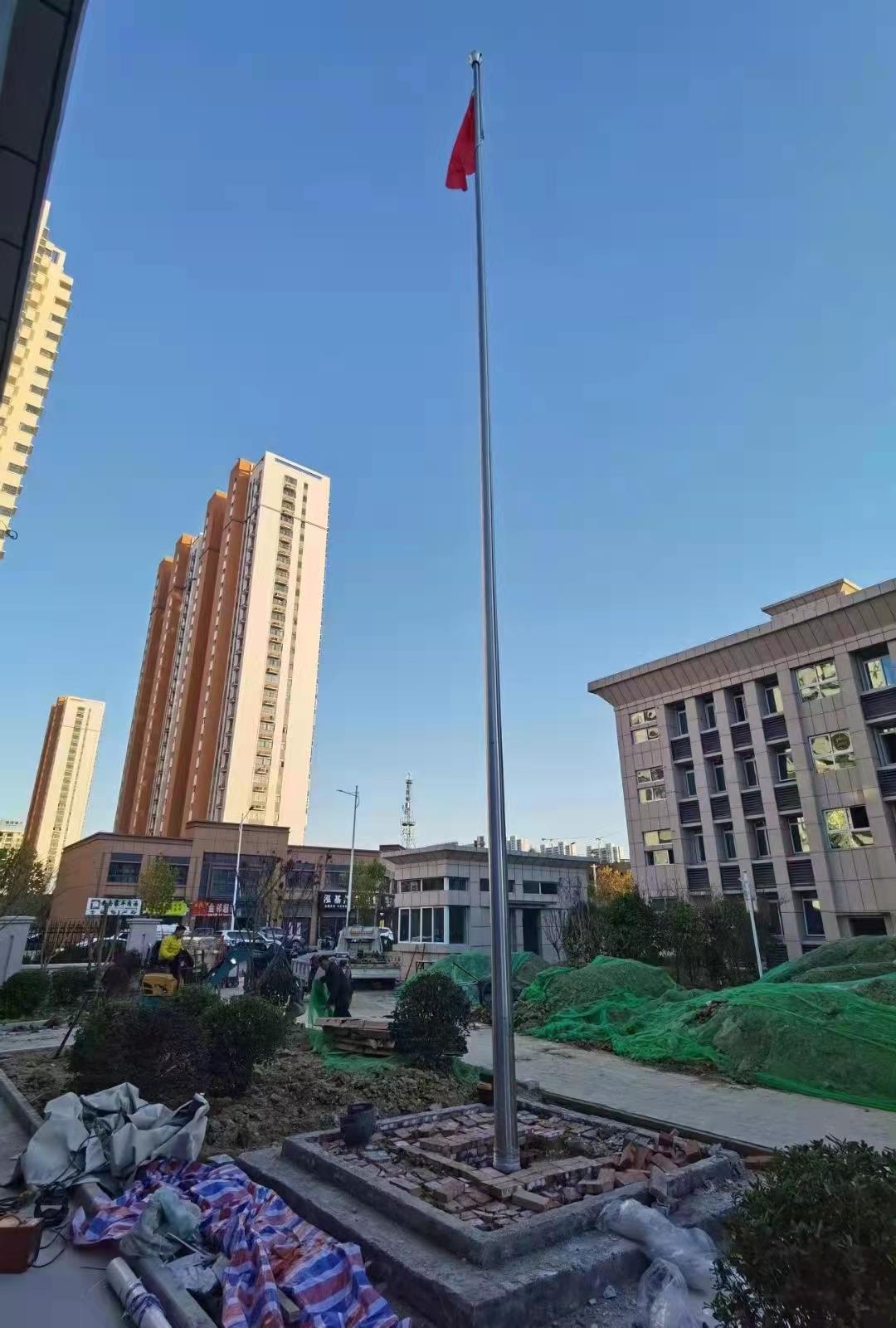 宿州市埇橋區(qū)三里灣派出所15米不銹鋼錐形旗桿,此次左尚金屬安徽耀龍為宿州市埇橋區(qū)三里灣派出所生產(chǎn)的旗桿為優(yōu)質(zhì)不銹鋼制造,旗桿錐形挺拔高大,是錐形外置式的旗桿,內(nèi)藏不銹鋼繩,旗桿外無旗繩,免去旗桿與旗繩碰撞產(chǎn)生刮痕,從而可能導致桿體易生銹。