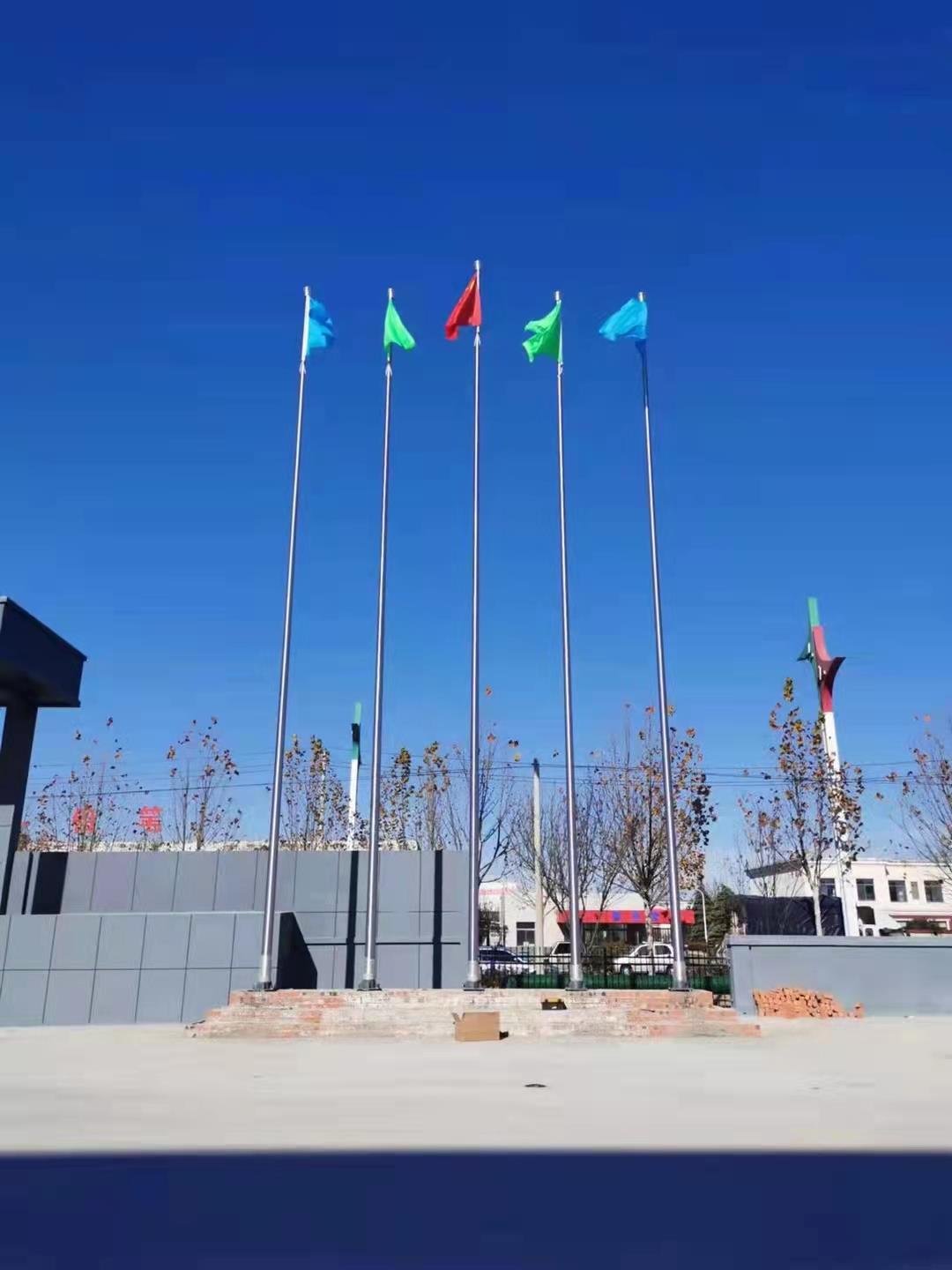 江蘇奧諾包裝有限公司15.8米1支+15米4支不銹鋼錐形旗桿,此次左尚金屬安徽耀龍為江蘇奧諾包裝有限公司生產(chǎn)的旗桿為優(yōu)質(zhì)不銹鋼制造,旗桿錐形挺拔高大,是錐形外置式的旗桿,內(nèi)藏不銹鋼繩,旗桿外無旗繩,免去旗桿與旗繩碰撞產(chǎn)生刮痕,從而可能導(dǎo)致桿體易生銹。